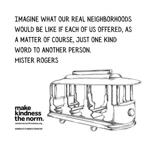 “Imagine what our real neighborhoods would be like if each of us offered, as a matter of course, just one kind word to another person.”